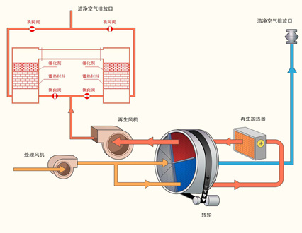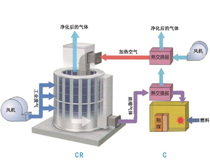 把有機(jī)廢氣加熱到760℃以上,將有機(jī)廢氣氧化生成CO2和H2O,從而凈化廢氣,并回收分解時所釋出的熱量,以達(dá)到環(huán)保節(jié)能的雙重目的,是一種用于處理中高濃度揮發(fā)性有機(jī)廢氣的節(jié)能型環(huán)保裝置。